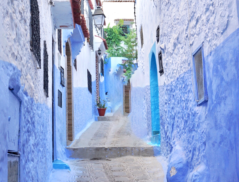有多少人是 因为这一片蓝而来到摩洛哥,只为了看一眼这童话的蓝白小镇——舍夫沙万。舍夫沙万名字的由来据说在1494年前还是一个普通的小村庄,之后由于很多犹太人前来这里避难,形成了一个独立的王国,后来被摩洛哥打败,纳入了摩洛哥版图。为何把小镇涂成蓝色,有这么一个说法,民间有说法是夏天为了驱蚊才把小镇的墙都涂成了蓝色来达到驱蚊降温的效果。也有说是当时犹太人有一种天然的颜料,讲房屋涂成蓝色,就会被神灵保佑庇护,导致家家都纷纷效仿。所以才有了今天蓝白的小镇。